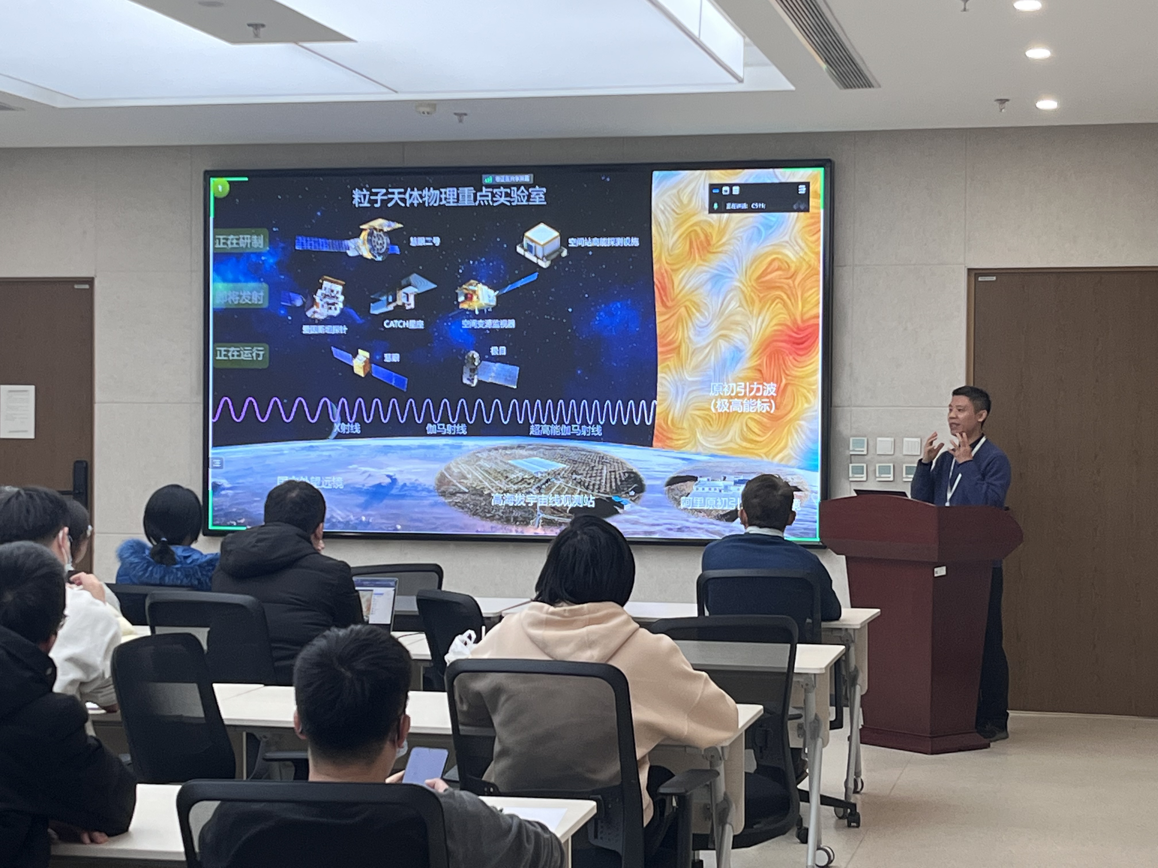 熊少林研究员为beat365中国唯一官方网站的师生做“宇宙最剧烈爆炸之谜”的学术报告,报告会后,熊少林研究员回答了老师和同学们的问题,现场交流气氛热烈。
